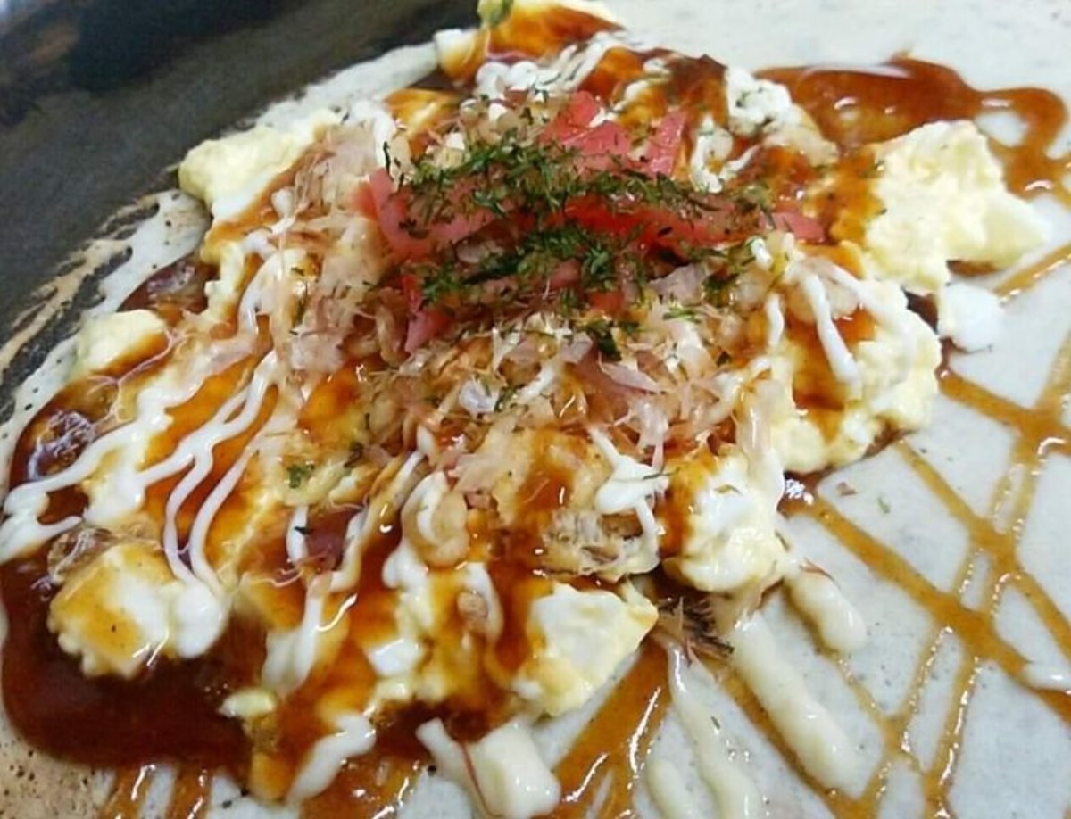 ・「お好み焼き風クレープ」(500円):米粉の生地とクレープ生地のコラボを楽しめる。ソース、マヨネーズ、青のり、鰹節、紅しょうがかかり、好みでチーズのトッピングも可。