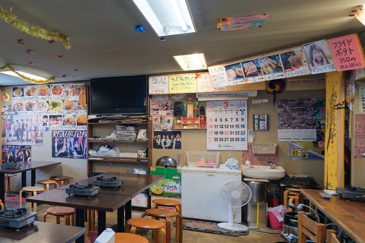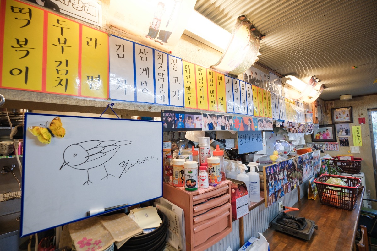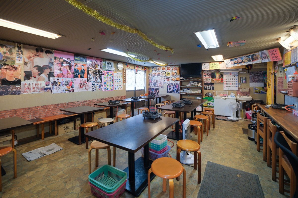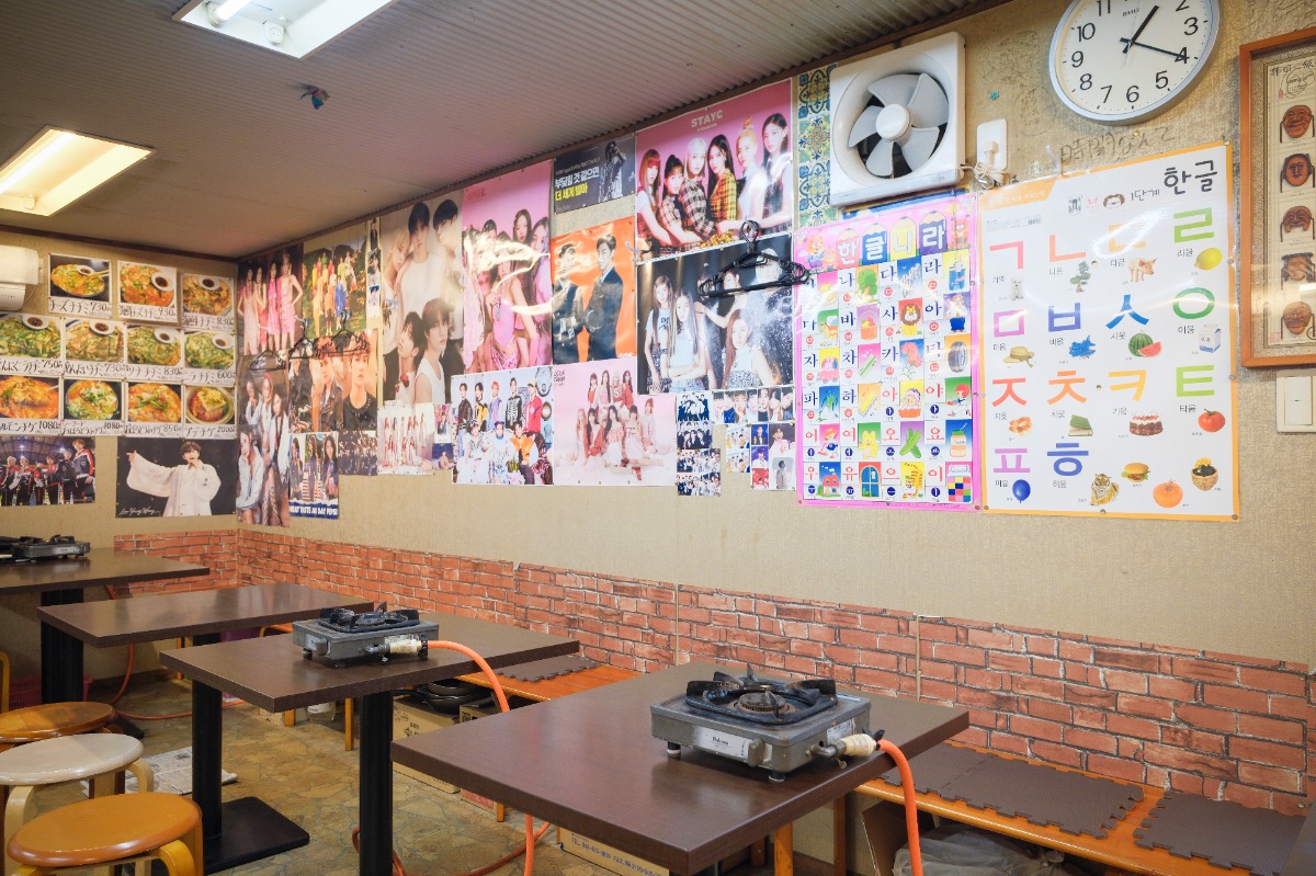 K-popアイドルなどのポスターが貼られていて、賑やかな雰囲気がありますね。