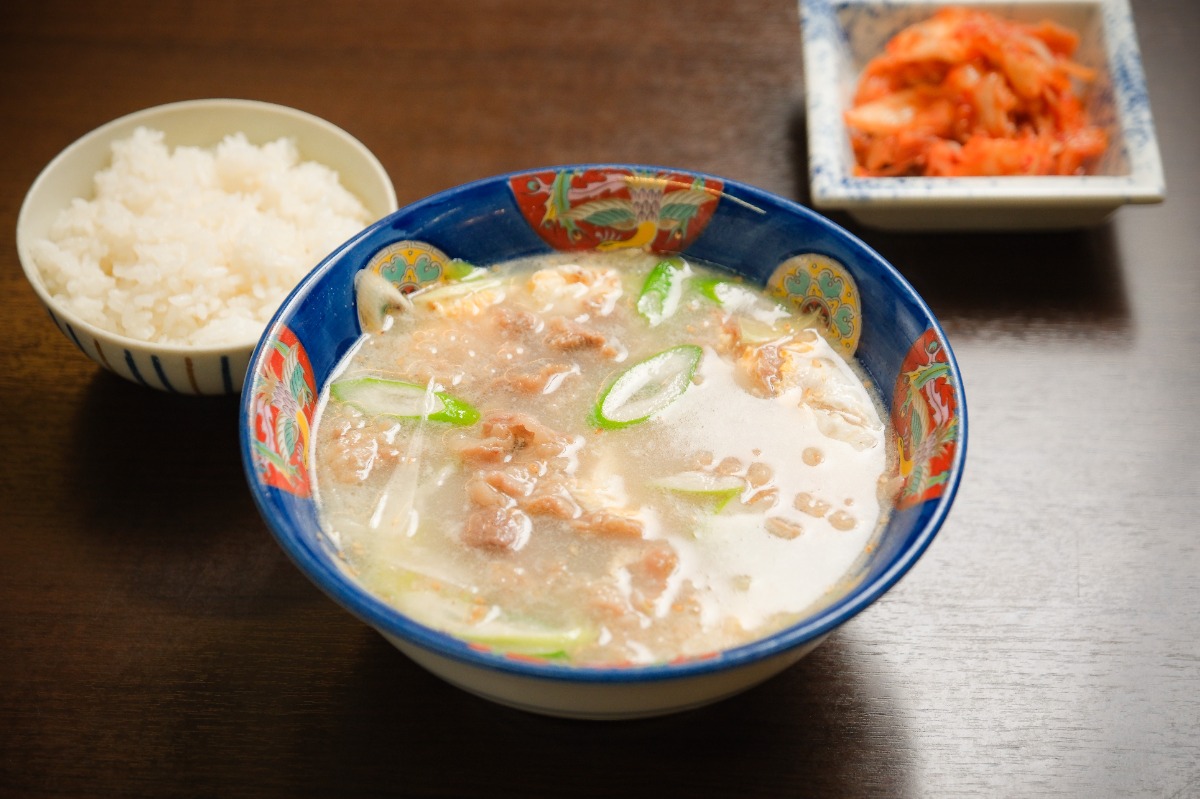 コショウで味付けしたあっさり風味の牛骨スープ。ごはんをスープに一気に入れて味わうと箸が止まりません!