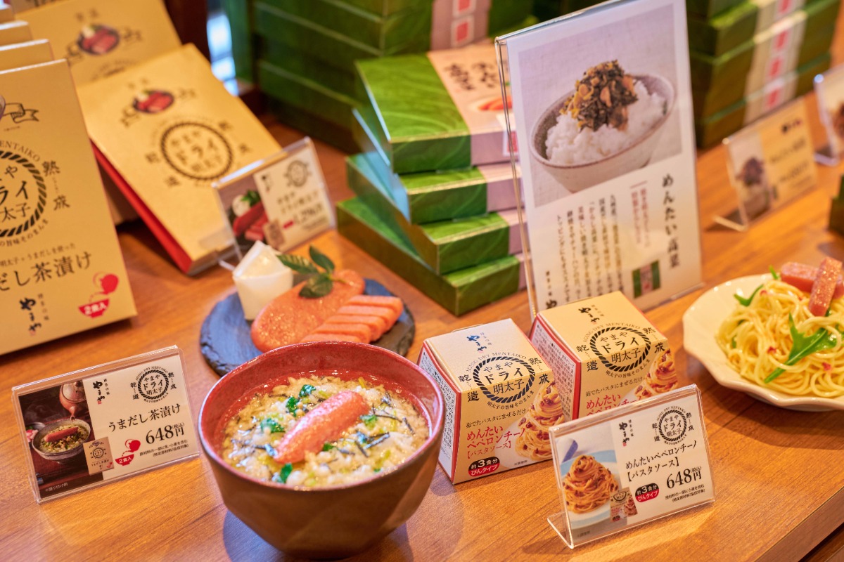 また、店内でやまやの明太子を使用し た加工商品を多数販売。