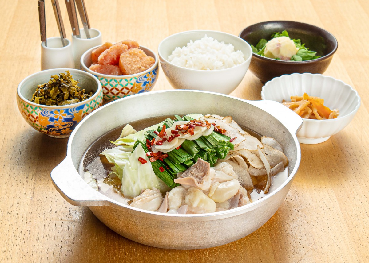 看板メニューの博多もつ鍋は、最も美味しいとされる国産牛小腸を100%使用。