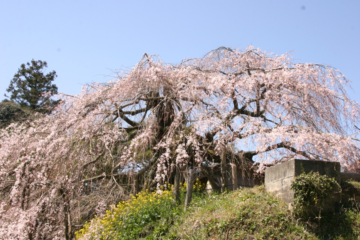 昔懐かしい農村風景が広がる石畳地区にあるシダレザクラは、高さ8mもの枝を伸ばす、樹齢350年を越える1本桜!