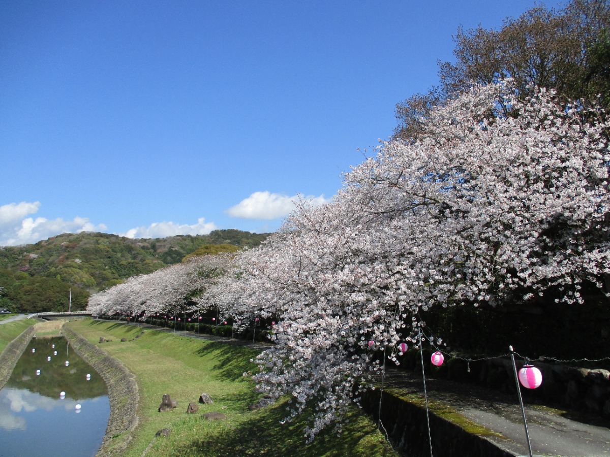 ソメイヨシノやヤエザクラなどが見事に咲き誇る、市内でも有名な桜の名所。