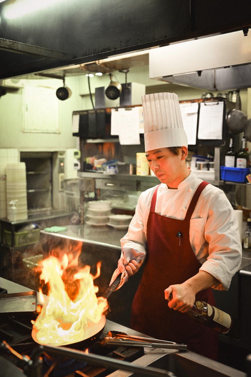 愛媛県出身。洋食の料理人を目指して料理学校に通っていたとき、特別講師として訪れた「レストラン門田」創業者のムッシュ門田に憧れ、19歳から同店に勤めている堀尾さん。シェフ歴は6年。観光列車「伊予灘ものがたり」の社内提供メニュー作りも担当されています。