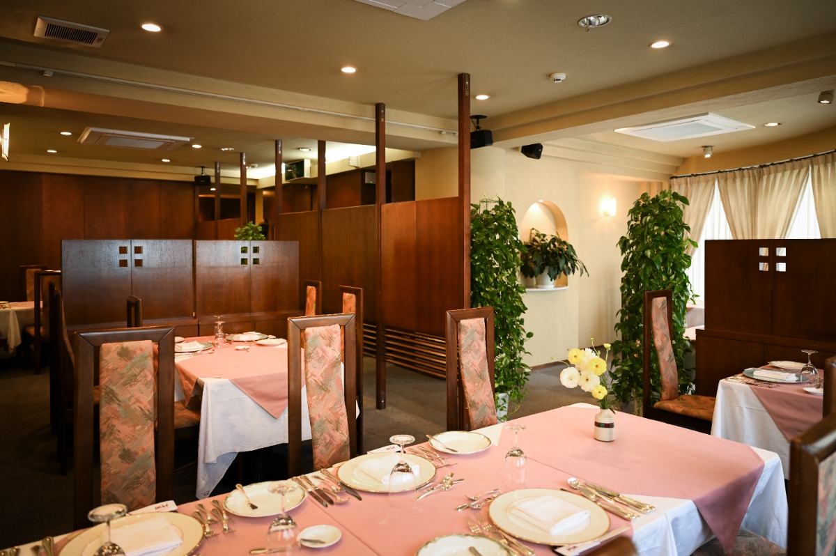 穏やかな空気が流れる店内。テーブルセッティングの美しさに魅了されます。家族との食事会や接待などにぴったりな個室もあり、貸し切りにも対応!