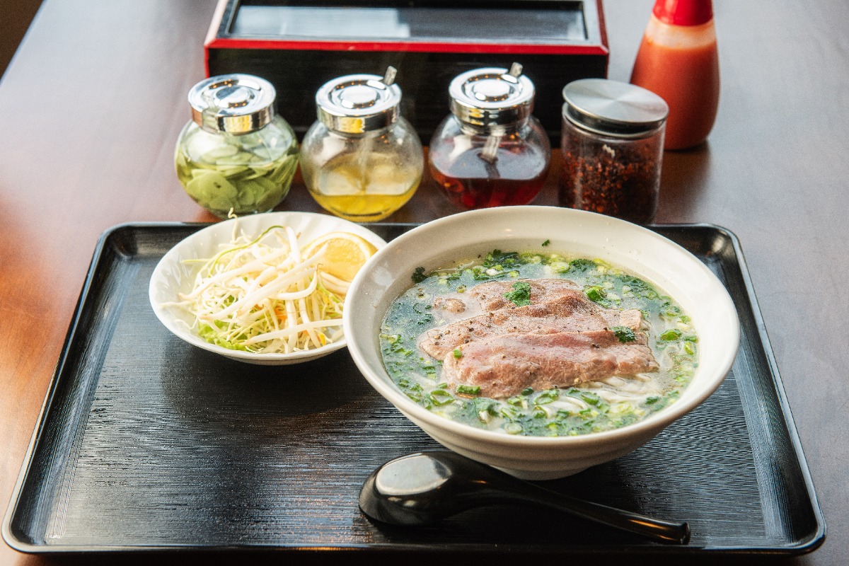 店で一番人気のフォーは「しゃぶしゃぶ牛肉のフォー」。生唐辛子や香味酢など、テーブルにある調味料で自分好みに味変が可能です!