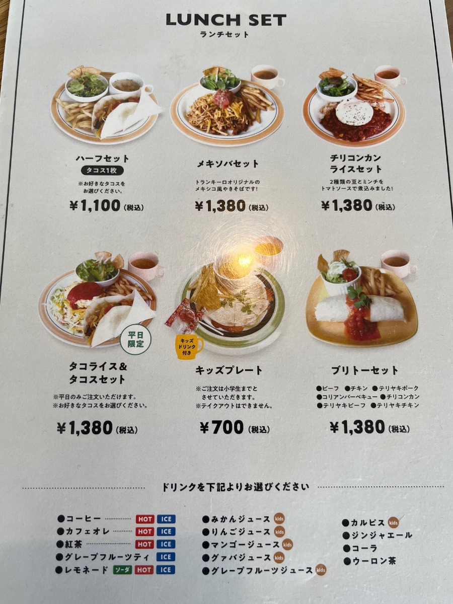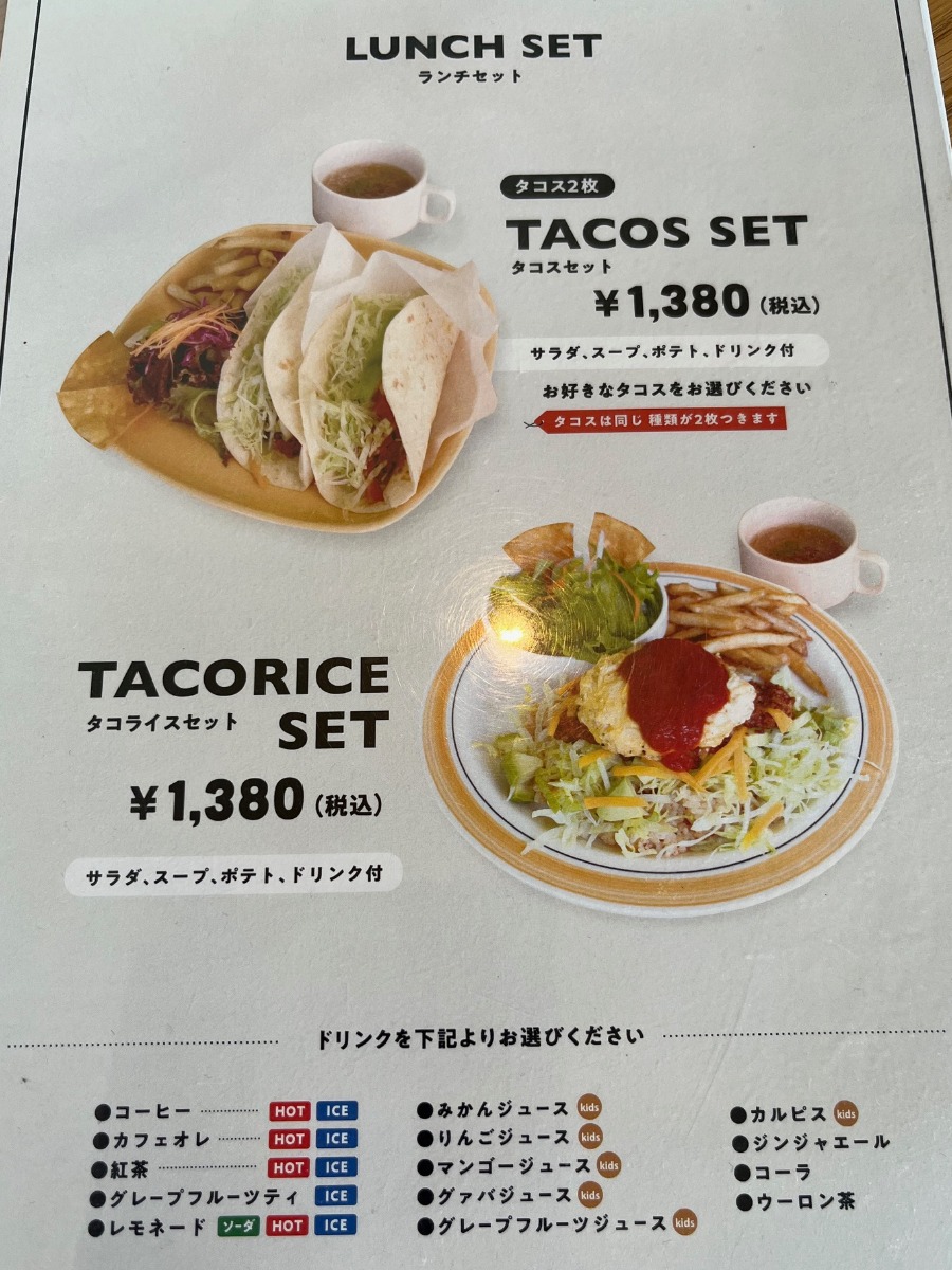 もちもちのオリジナル生地がとにかく美味しいと評判のタコスは全部で16種類。スープ、ポテト、サラダ、ドリンクが付いたお得な各種セットをはじめ、「チリコンカンライス」や「ブリトー」、「タコライス」やタコミートで作った焼きそば「メキソバ」など、リピート必至の人気メニューが豊富に揃っています。