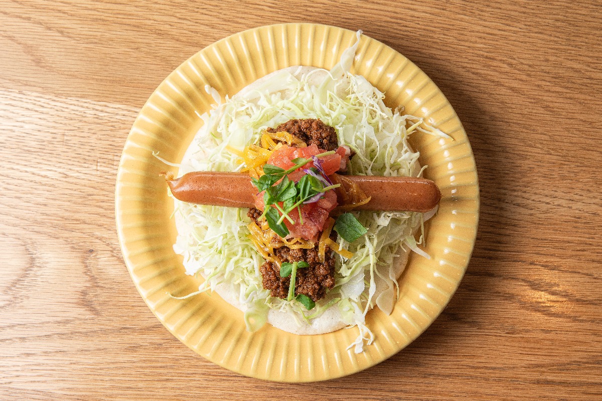 プリッと食感のソーセージが特徴的な一品。スパイスを効かせたオリジナルタコミートがたっぷり!