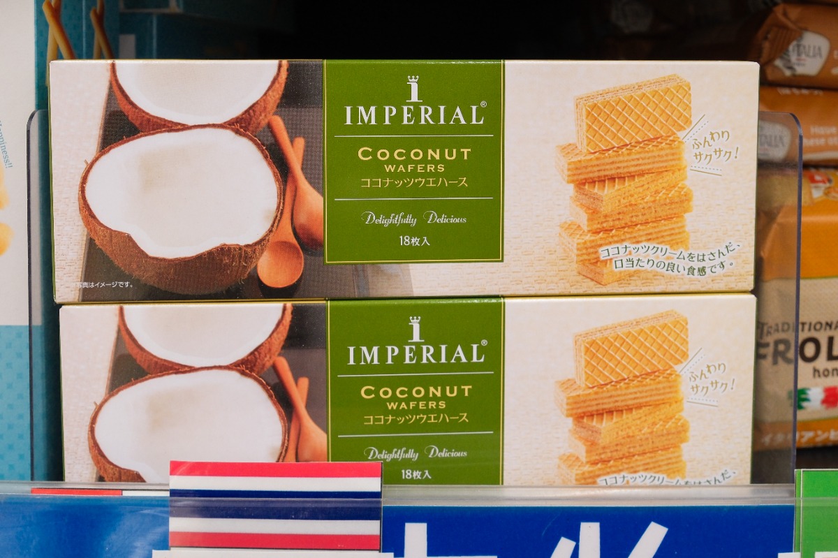 南国の香りあふれるココナッツクリームを挟んだ口当たりの良い食感のウエハース。