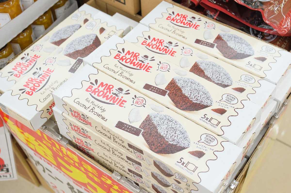 しっとりした食感のブラウニーに、ココナッツフレークをトッピングしています。