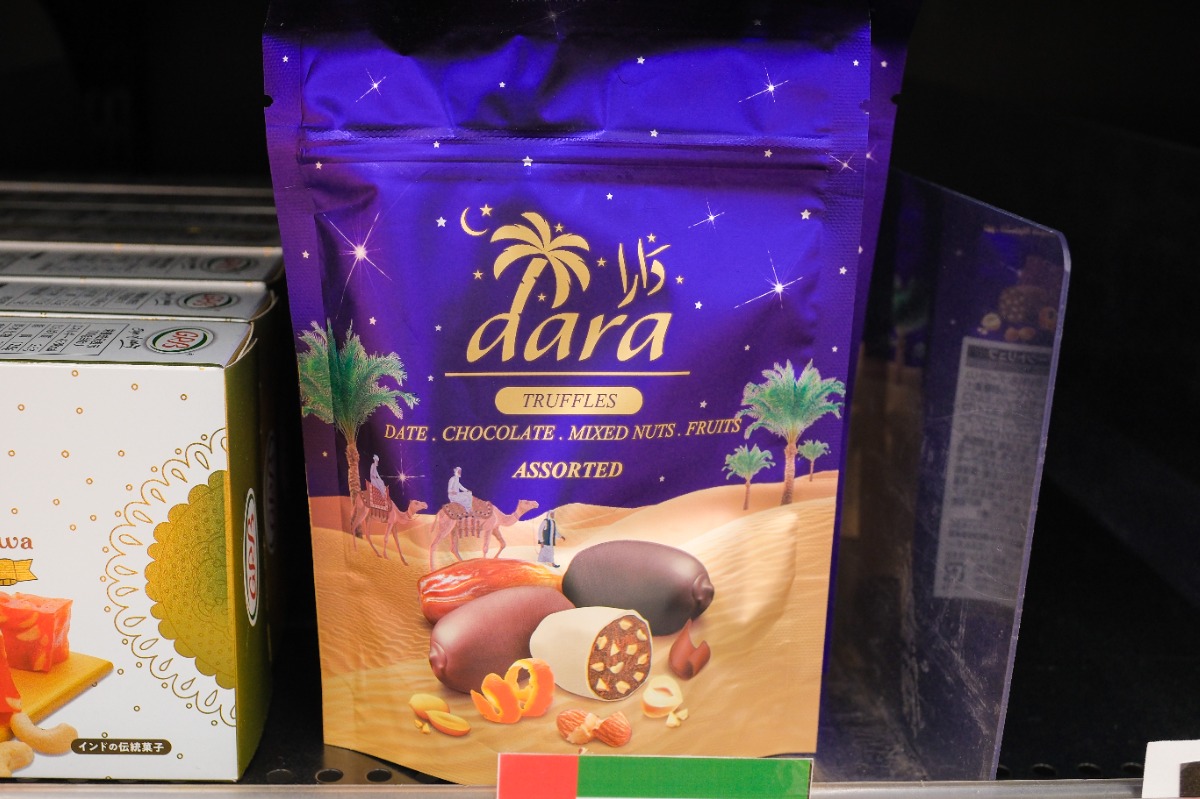 ペースト状にしたデーツにナッツなどを加え、チョコレートでコーティングしたトリュフ。