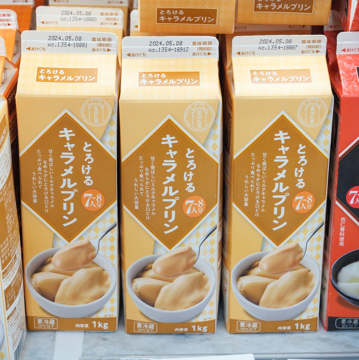 クリーミーでなめらかな口どけの牛乳パックスイーツ、とろけるキャラメルプリンです。