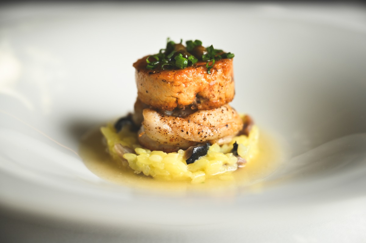 この日の魚料理は「あんこうとあん肝のポワレ サフランリゾット添え」