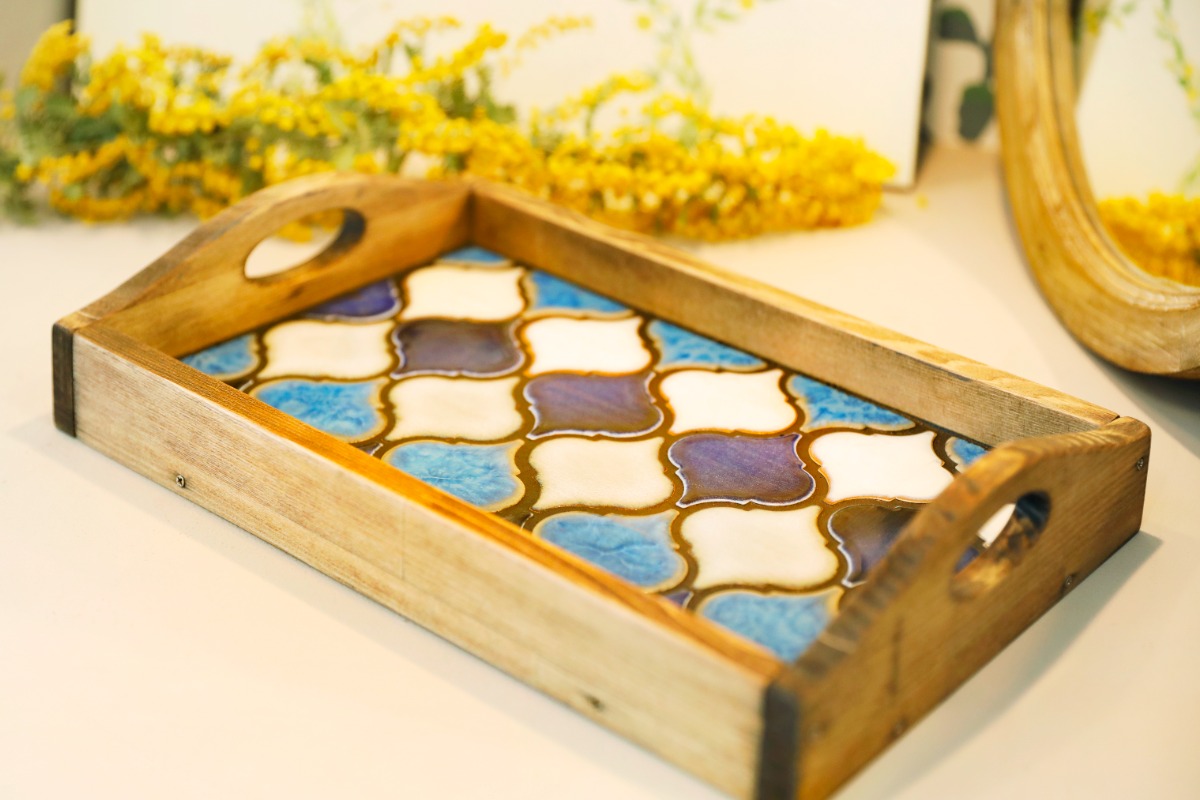 お気に入りのタイルで作ったいつも側に置きたくなるカフェトレイが完成。