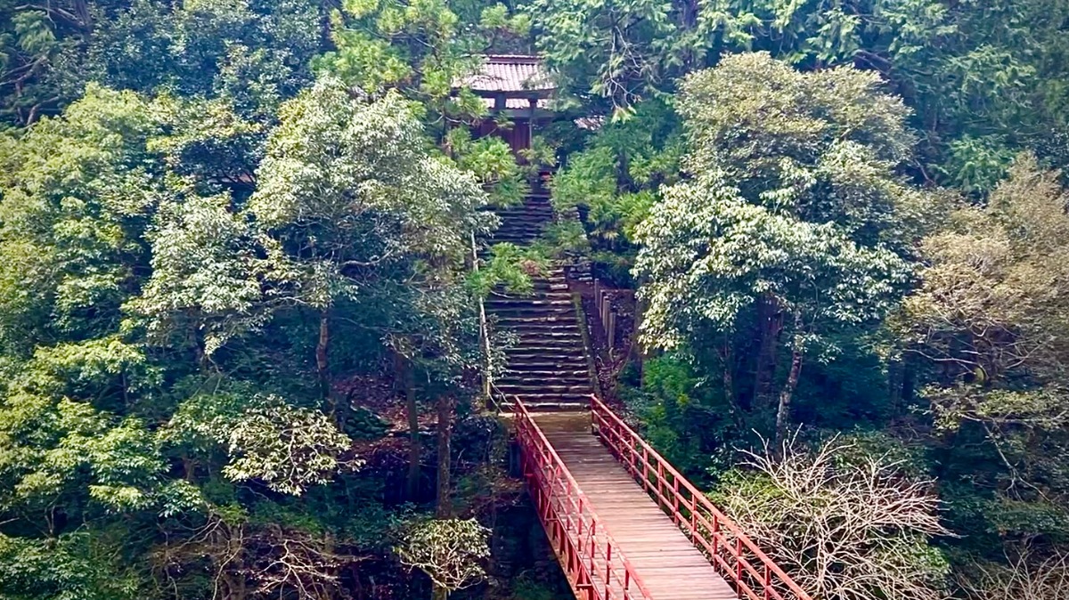 その先には木々に囲まれた階段と鳥居、四社神社があります。