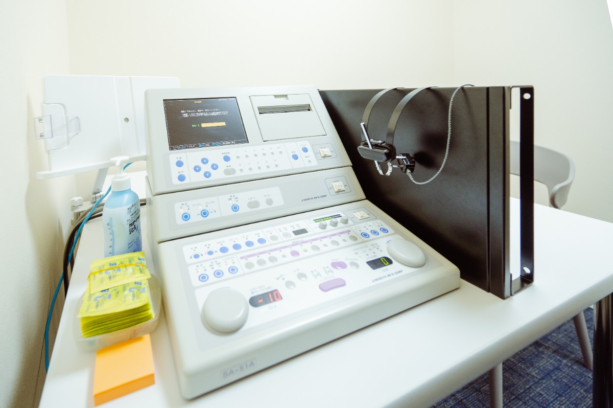 ▲様々な大きさ・高さの音が出せる聴力検査機器で正確な検査に努めている