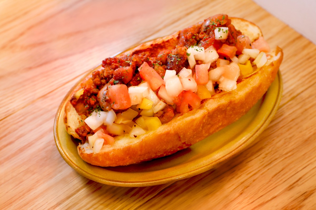 中でも、アメリカの伝統的なホットドッグ「チリホットドッグ」は人気ナンバーワン!大きいソーセージの上にメキシカンサルサソースがのっていて食べ応え十分。ホットドッグのジューシーさとチリコンカーンのスパイシーさが相性抜群の逸品です。具材がゴロゴロ入っているので食感も楽しいですよ。
