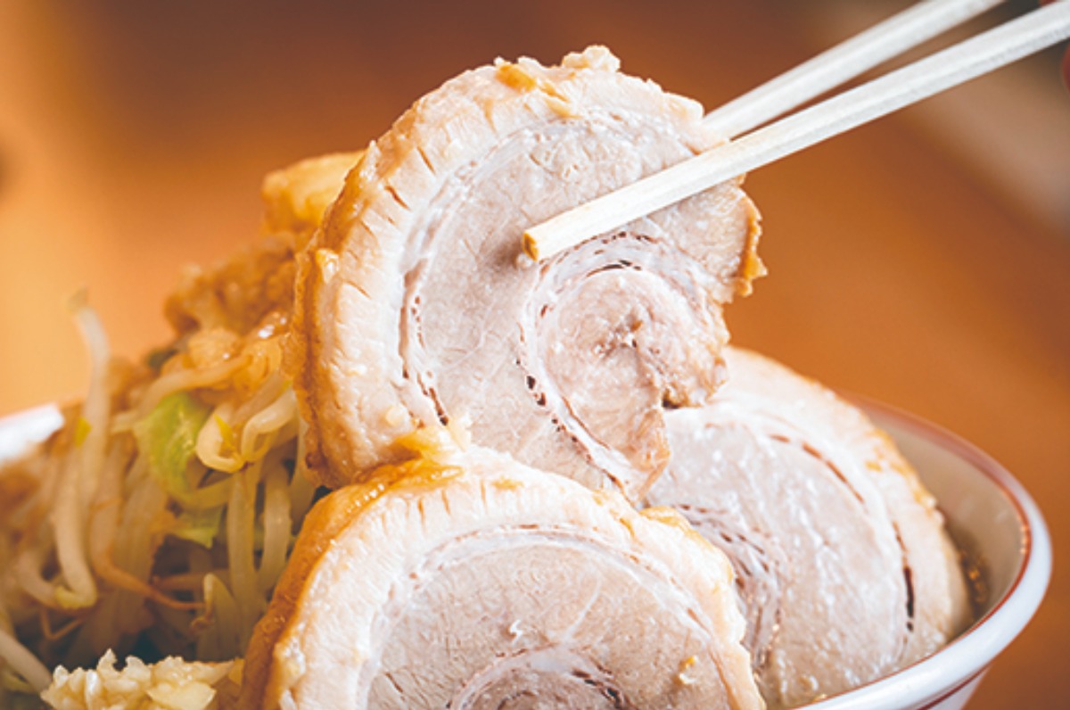 5時間かけて作った柔らかくて肉々しい豚肉。豚バラを使用し、口に入れた瞬間甘みが広がって、ほろほろと崩れていく食感がたまらない。トッピングで枚数追加も可能。