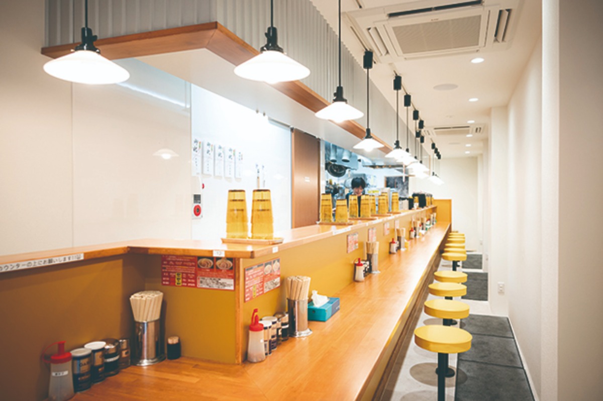 店内はカウンター席のみなので、女性一人でも入りやすい。卓上には、唐辛子や酢などの味変アイテムも並び、自分好みの味を楽しめる。