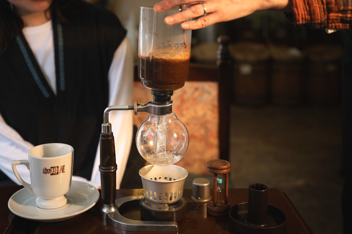 サイフォンで淹れる自慢の浅煎りコーヒー