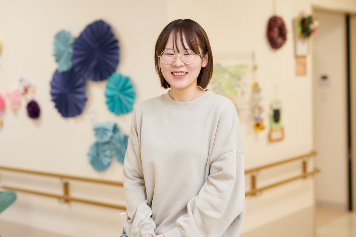宇和島市出身。高校在学中に「祝の郷」を訪れた際、介護に関する職に就きたいと改めて感じたそう。2月からは夜勤も任せられ、周囲からの信頼も厚い