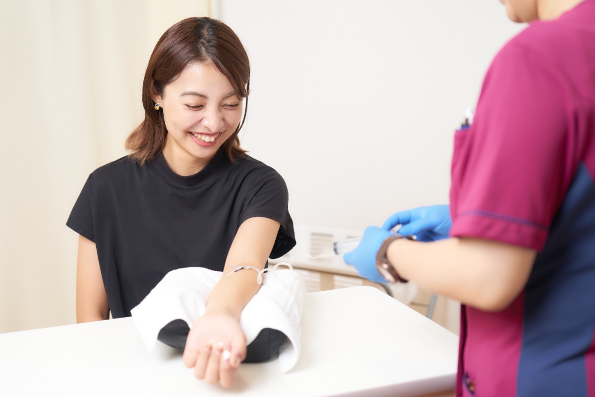 また、グルタオチンを主成分とし、美肌や肝機能改善など美容やエイジングケアを目的とした「白玉注射」も男女問わず人気があるそう。この2種類の注射を合わせた「ごほうび注射」というオリジナルメニューもある。どの注射が良いか迷ったときは先生に相談してみよう。