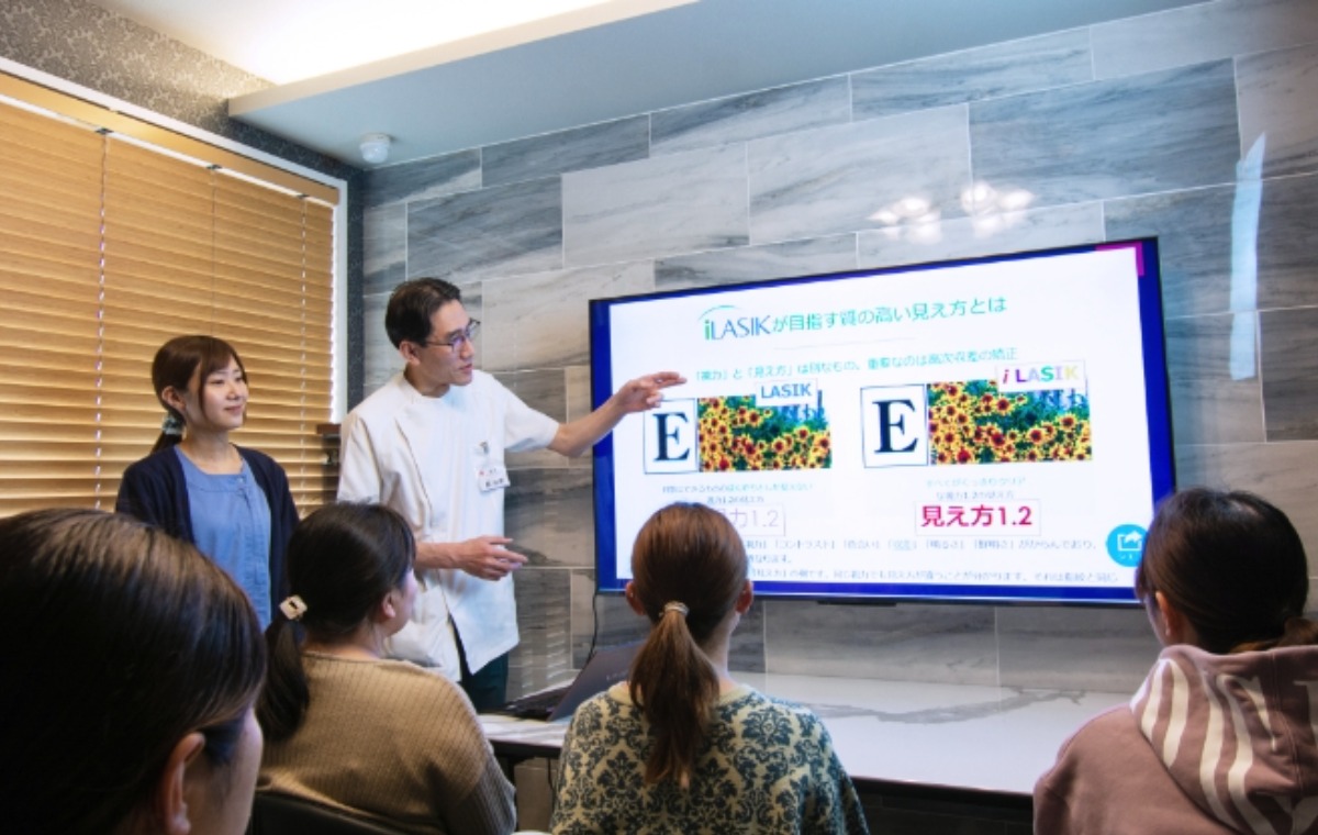 従来施術前に行える検査は、個人差のある角膜や水晶体の歪み、眼球全体の高次収差まで加味しての矯正は難しい現実があった。しかし「iLASIK」なら、その人の眼球の細かな歪みまで精密に検査を行った上での施術が可能に。無料説明会も定期的に実施している。