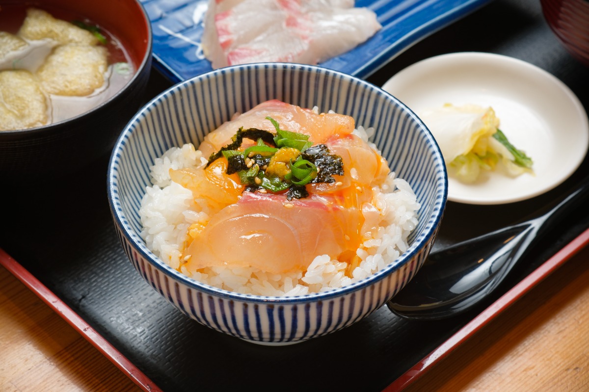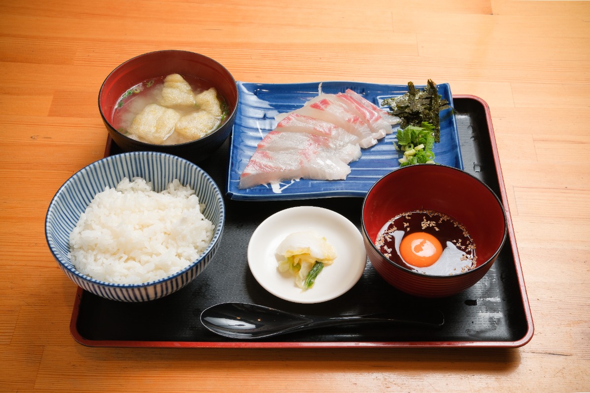 天然よりも美味しい!?2023年に誕生した、宇和島市の株式会社タイチが育てるブランド養殖真鯛「鯛一郎クン」を使った「宇和島 鯛めし」。モチモチした食感で、くさみなく広がる深い味わい。漬物がセットなのも嬉しいポイントです。