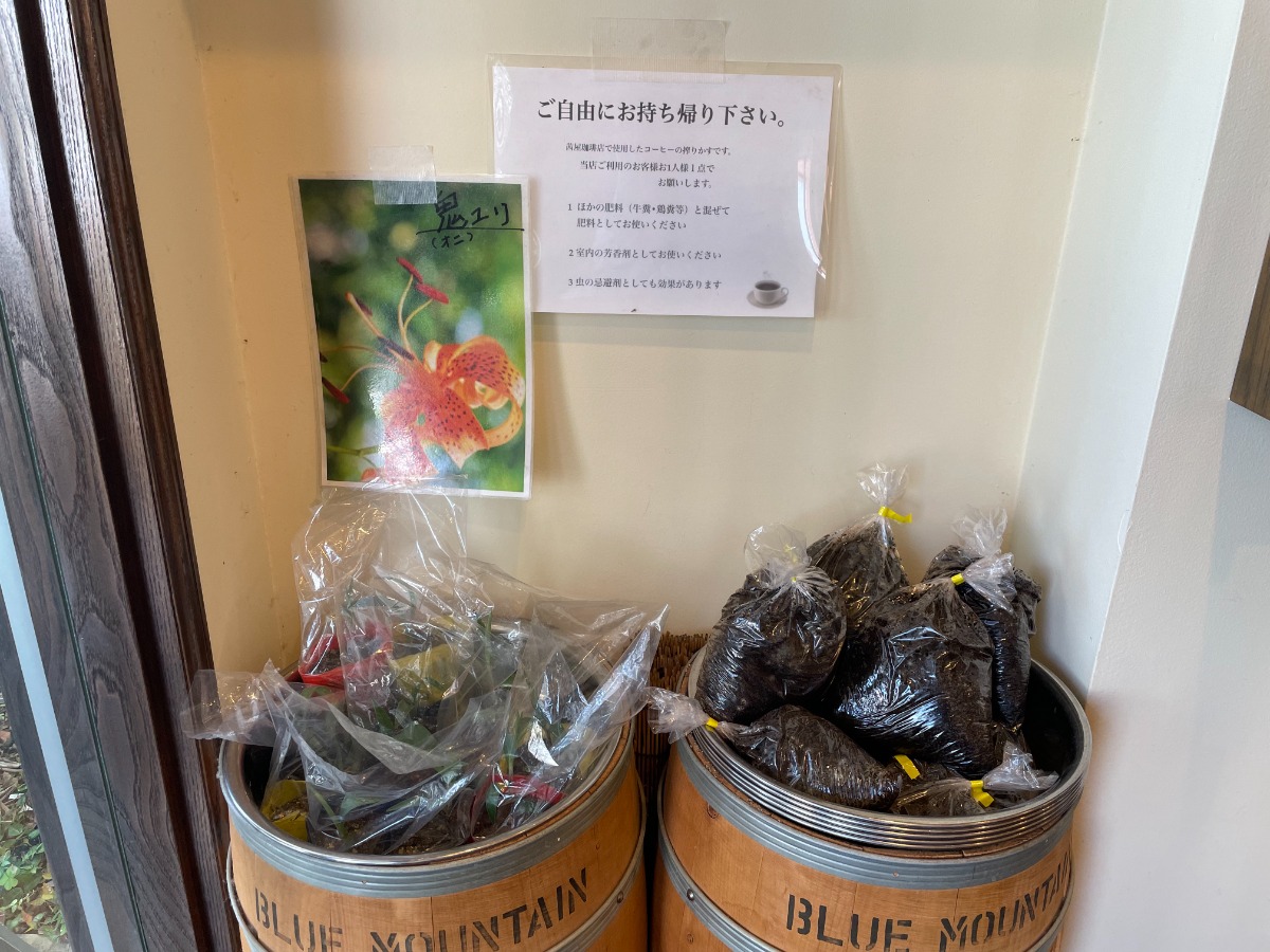 茜屋珈琲店で使用した珈琲の絞りかすは自由に持ち帰りできます。
