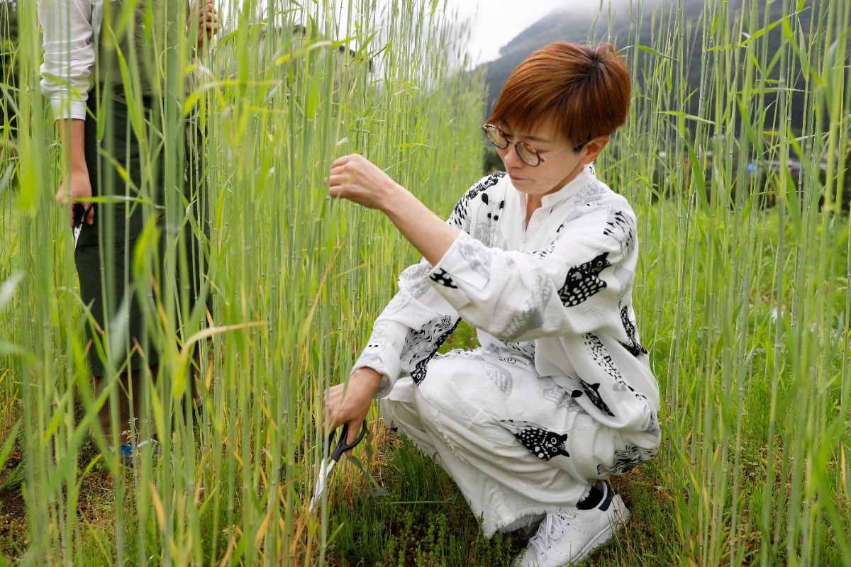 最長170cmに成長した青々とした麦を刈り取るところからスタート。