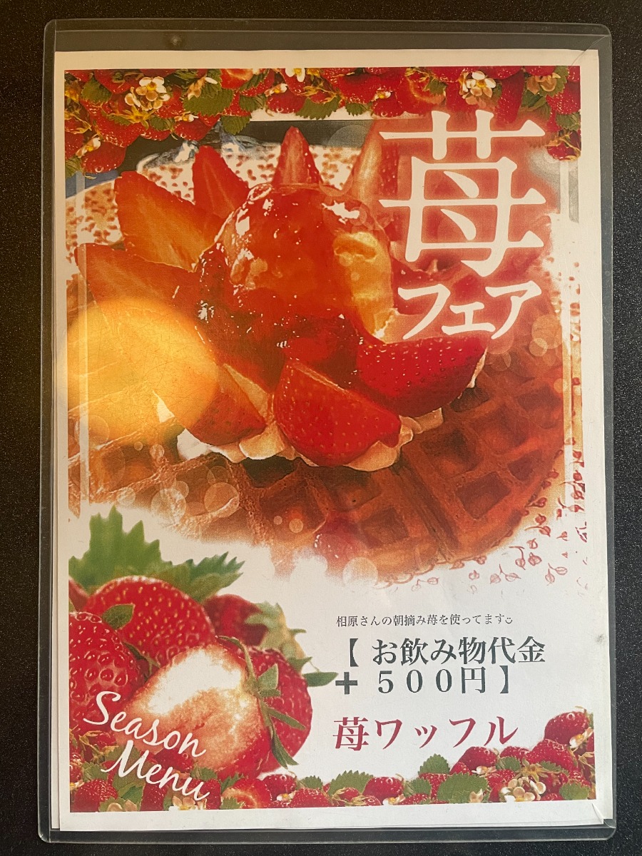 大人気のイチゴワッフル・パフェは6月頭までの予定。
