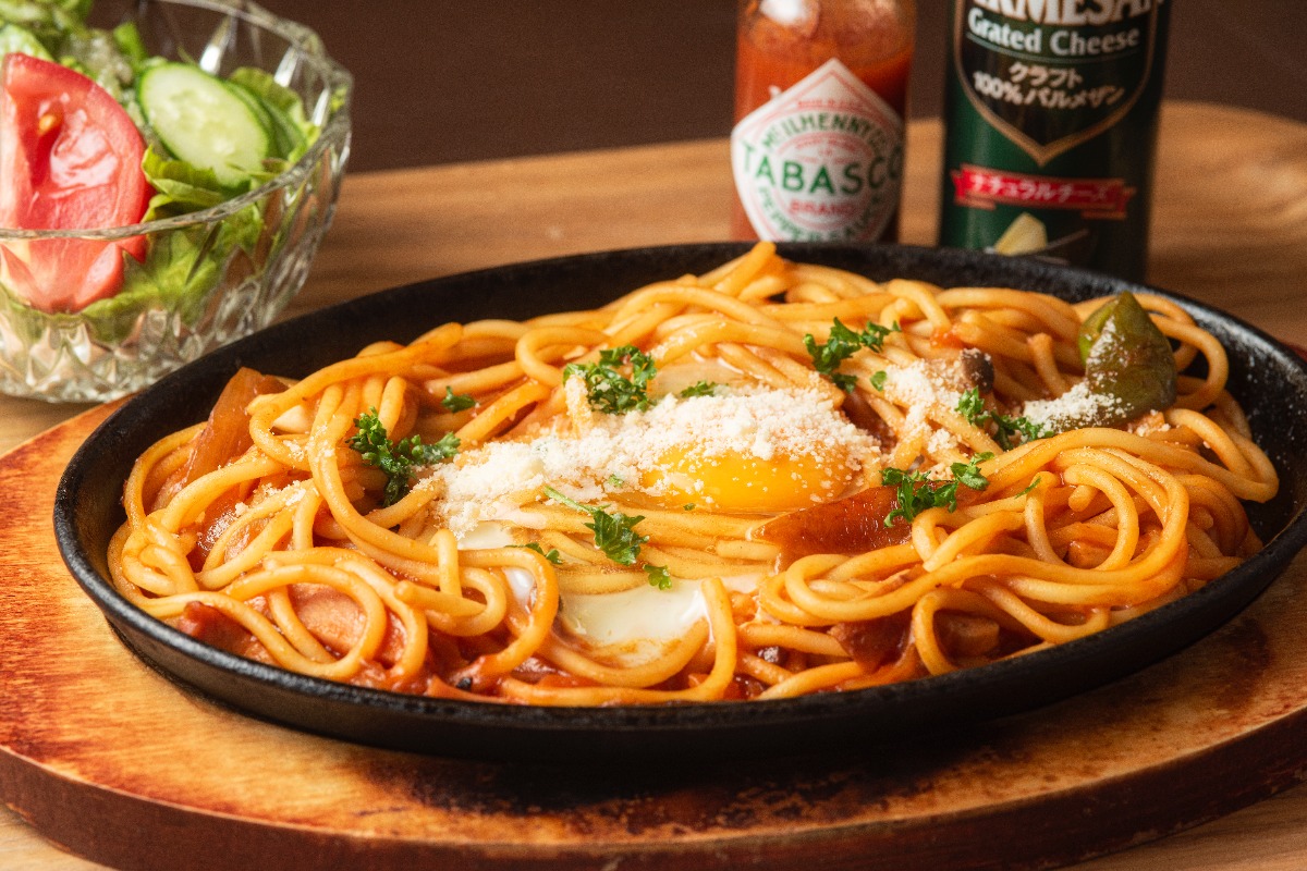「鉄板ナポリタン 玉子のせ」(900円)※サラダ付き