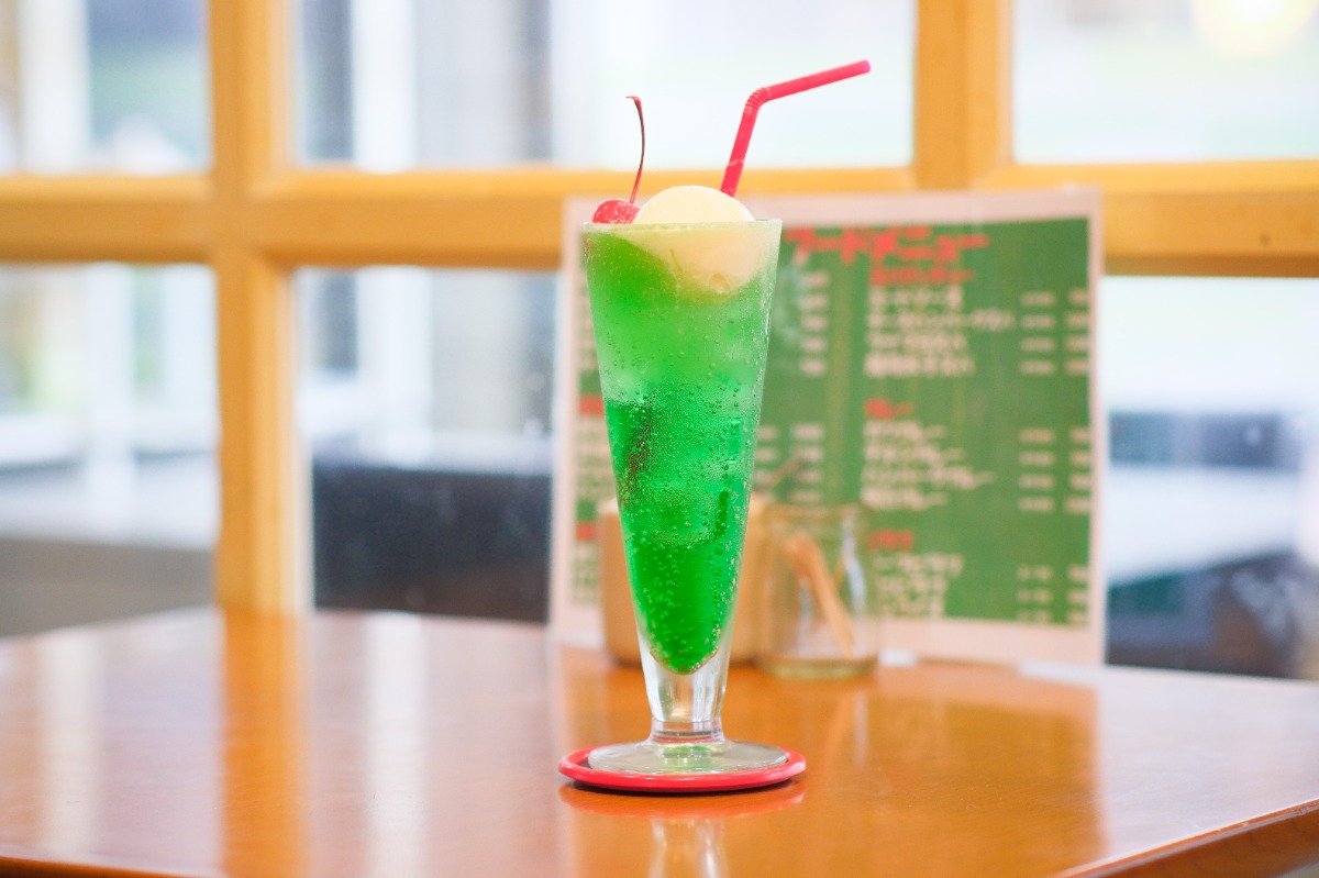さくらんぼと赤いストローがかわいい爽やかなソーダ!