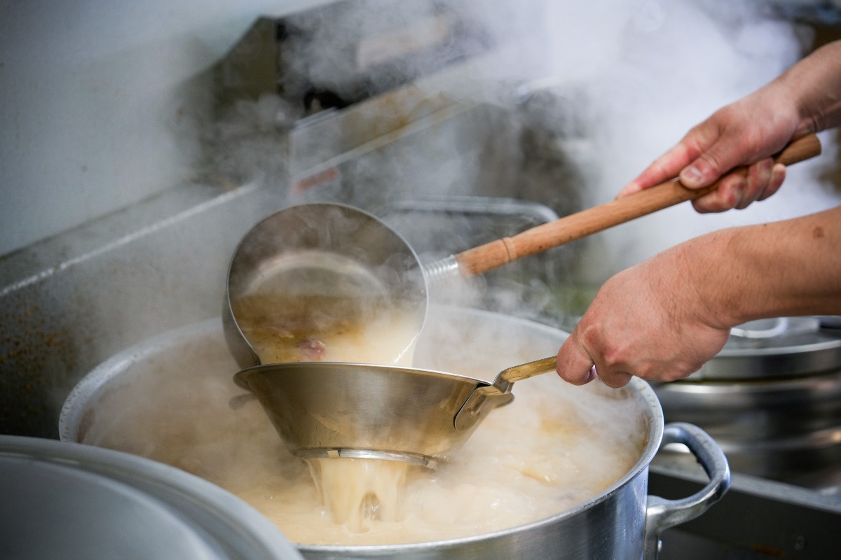コクを出す背脂、味に深みが出る豚のゲンコツや頭、豚足やハラなど、様々な種類の素材からダシをとっています。