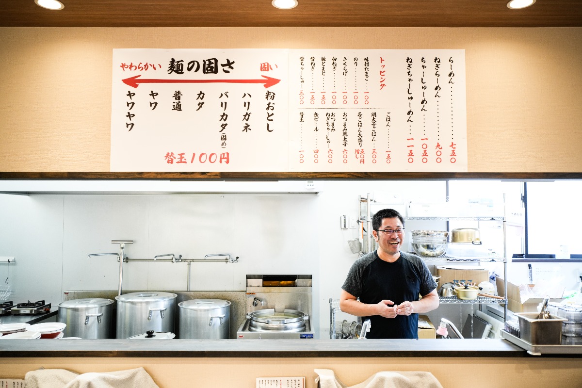 優しい人柄が魅力的な畠中さんが営むラーメン店「らーめんもりや空港通店」。