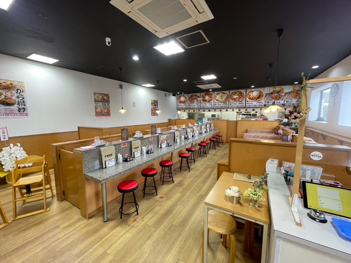 広々としたテーブル席は、家族や友人との食事に最適です。