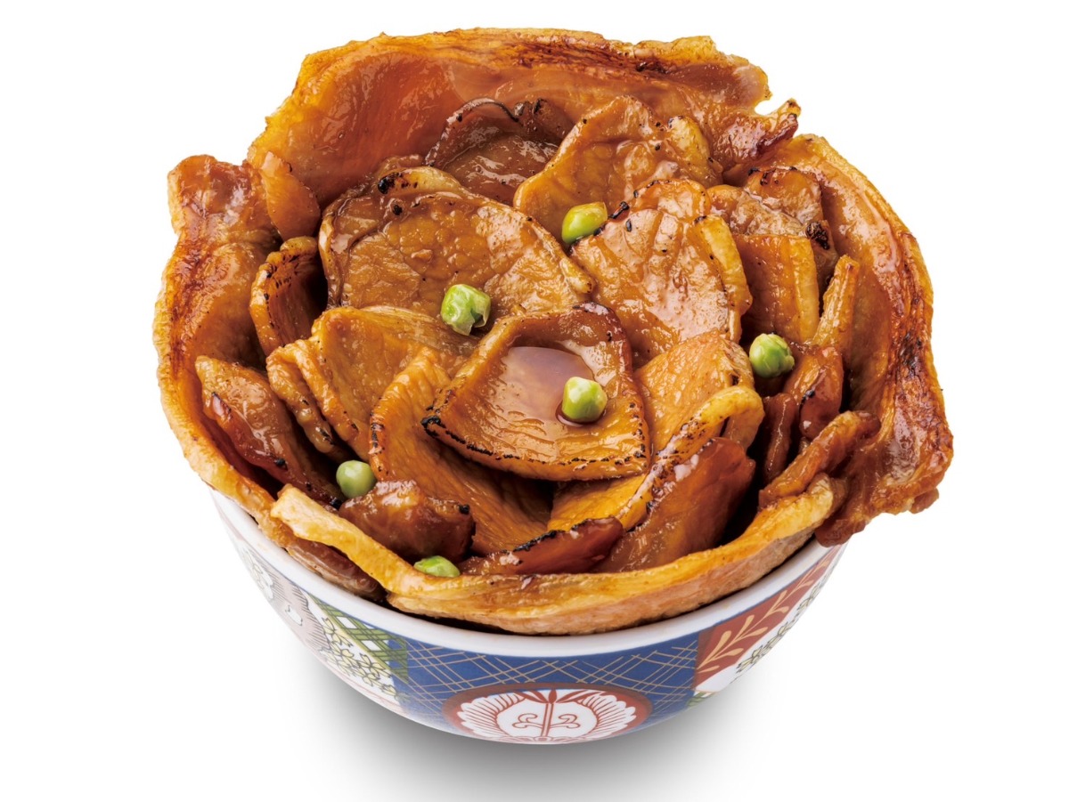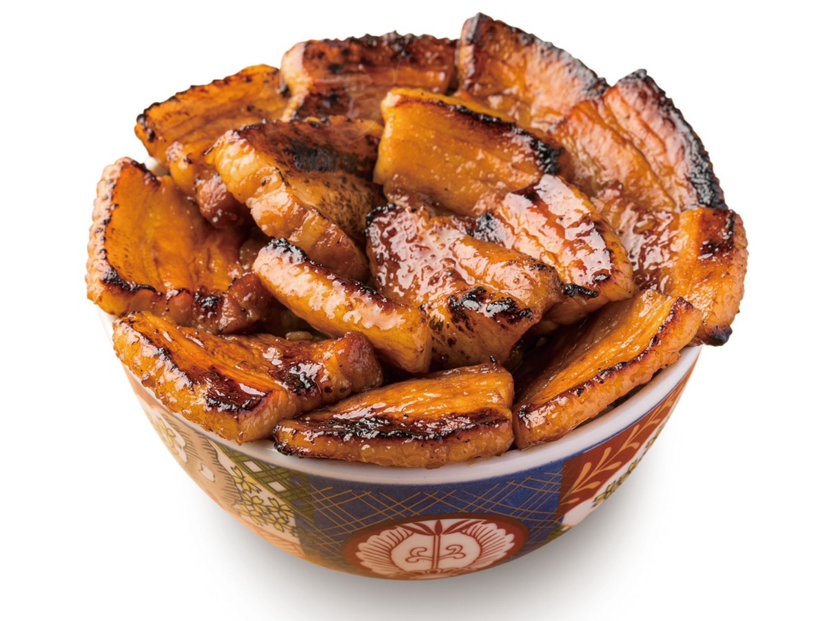 「豚バラ丼」は、厚さ約1.3cmの豚バラ肉を使い、秘伝の甘辛タレでじっくり焼き上げた逸品。