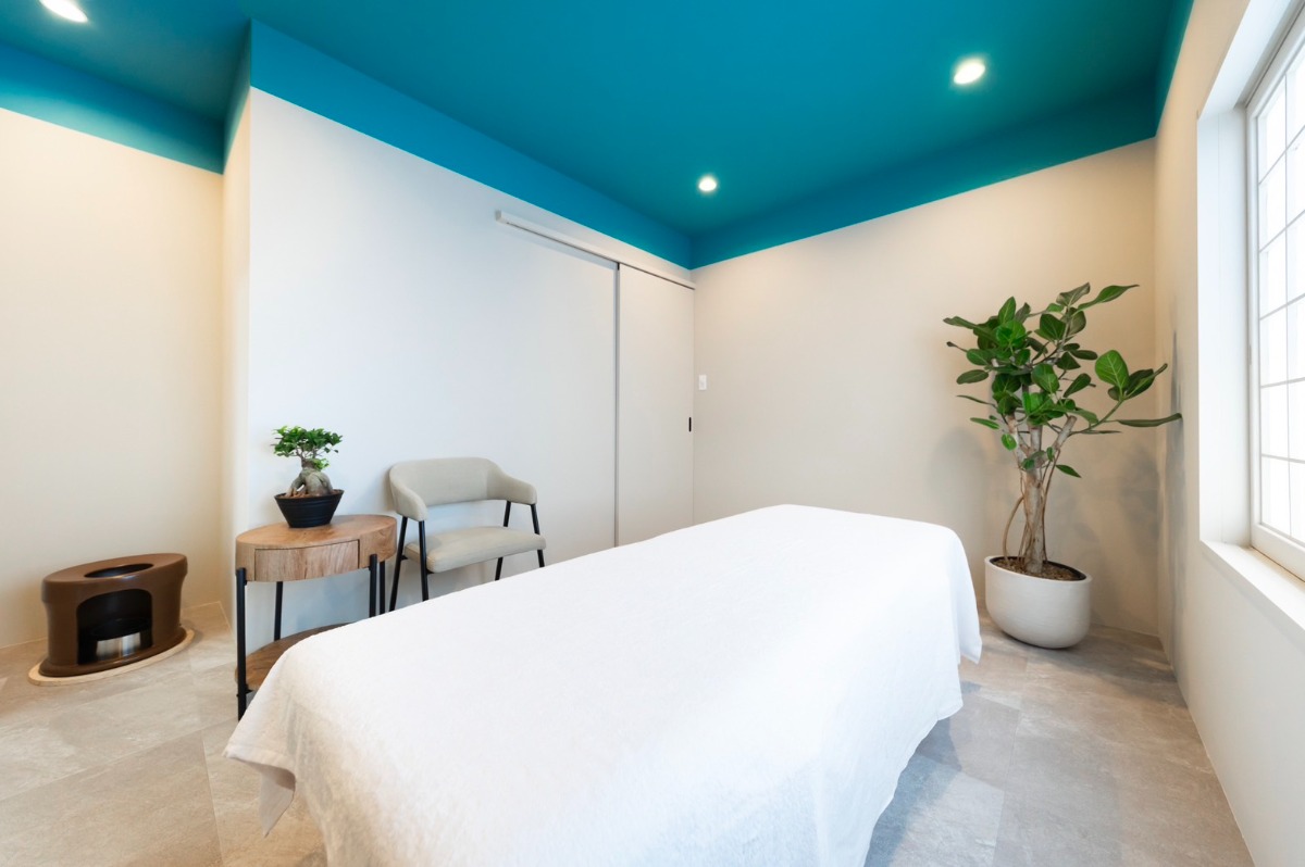 店内は、完全個室のプライベート空間となっていて、ゆったりとリラックスして施術を受けられます。部屋の温度や調光も自由に調整できるため、心地良い環境が整っています。完全予約制のため、周りを気にせず安心して過ごせます。プライベートな時間を大切にしながら、心身ともにリフレッシュしましょう。