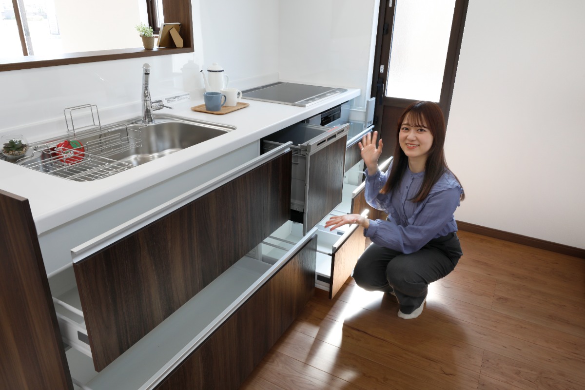 食器洗い乾燥機や水ほうき水栓などの優れた機能性はもちろん、収納がたっぷり設けられており