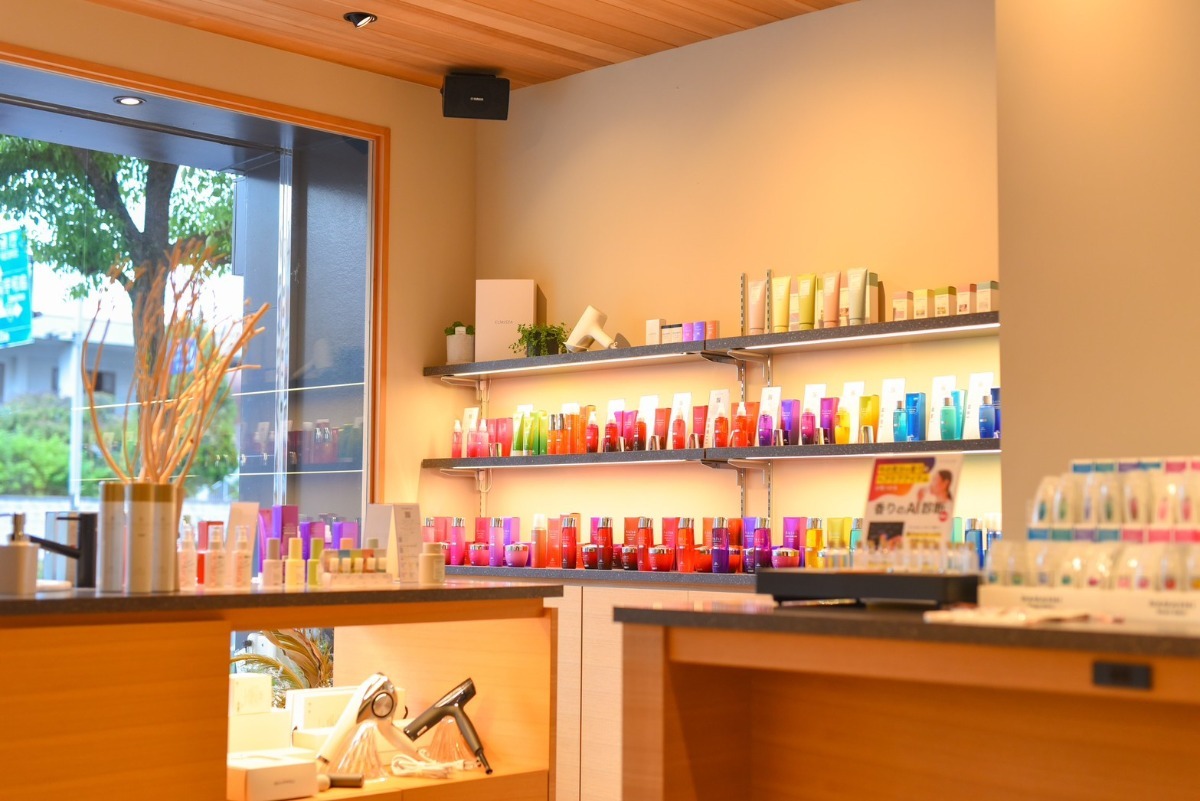 ショップも兼ね備えていて、ヘアケア商品やコスメなど13ブランドのアイテムがズラリと並びます。
