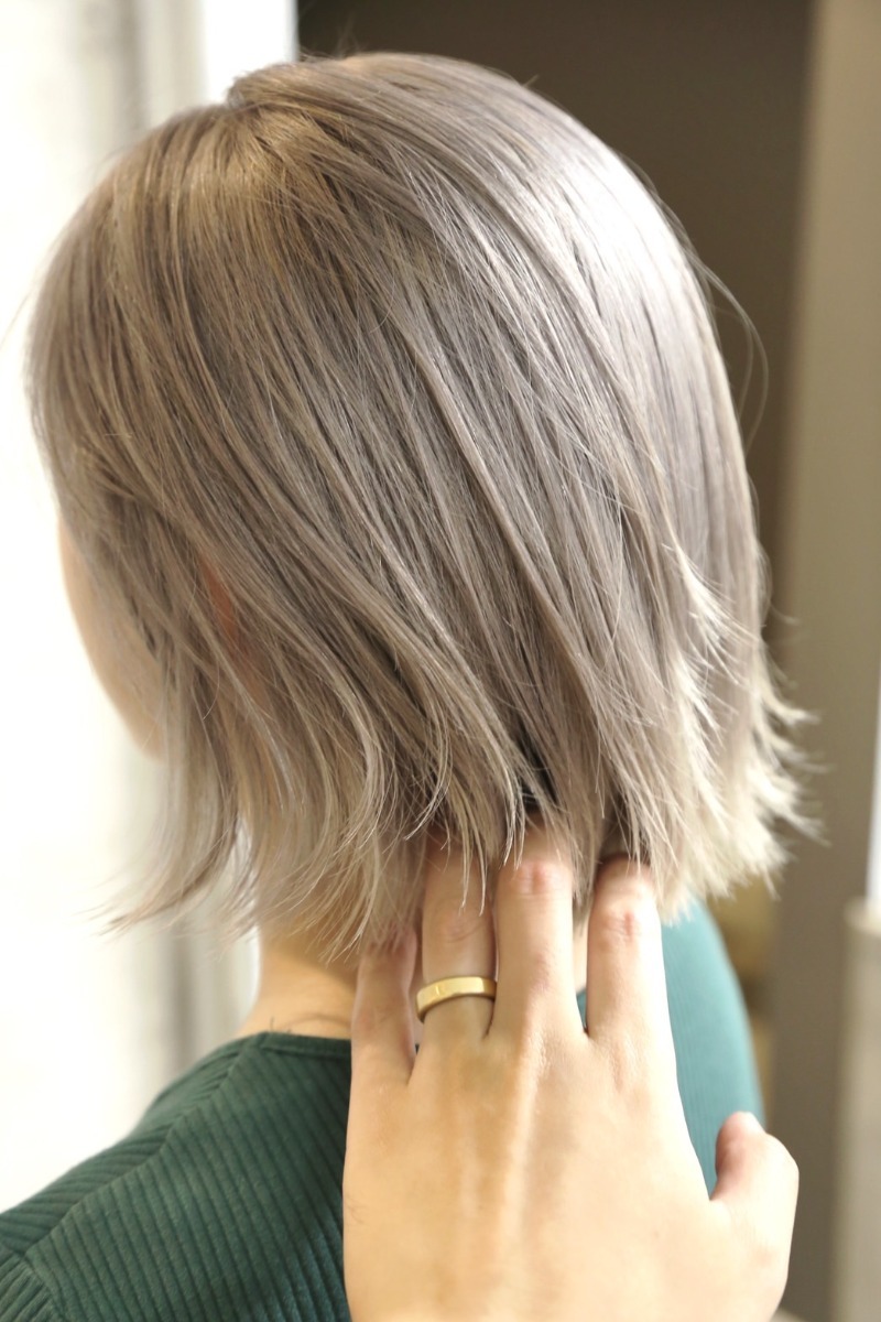 またブリーチなしの透明感のあるカラーを得意とし、こだわり抜いた高品質薬剤の使用で、艶・透明感や大人の抜け感をカラーで演出してくれます。