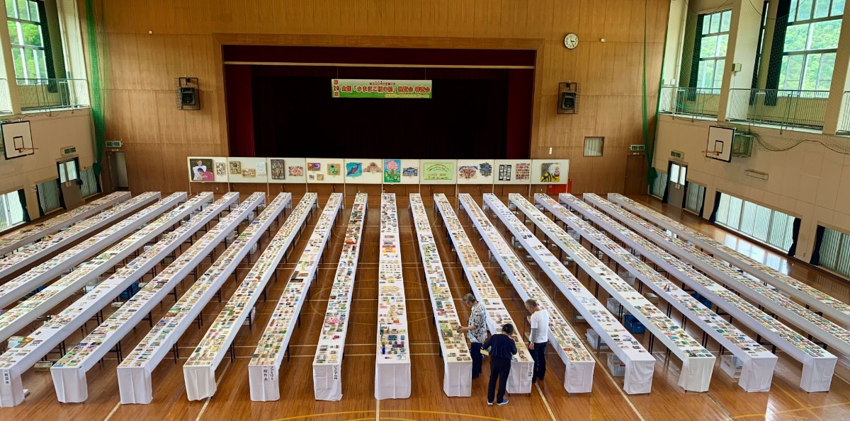 洋画家の折笠勝之氏が「絵はいつでも誰でも何にでも描ける」と、かまぼこ板に描いた油絵を職員にプレゼントしたことがきっかけとなり、1995年から毎年開催されています。今年も国内外から6000点を超える作品が集まり、応募作品すべてが同館で7月22日より展示されます。