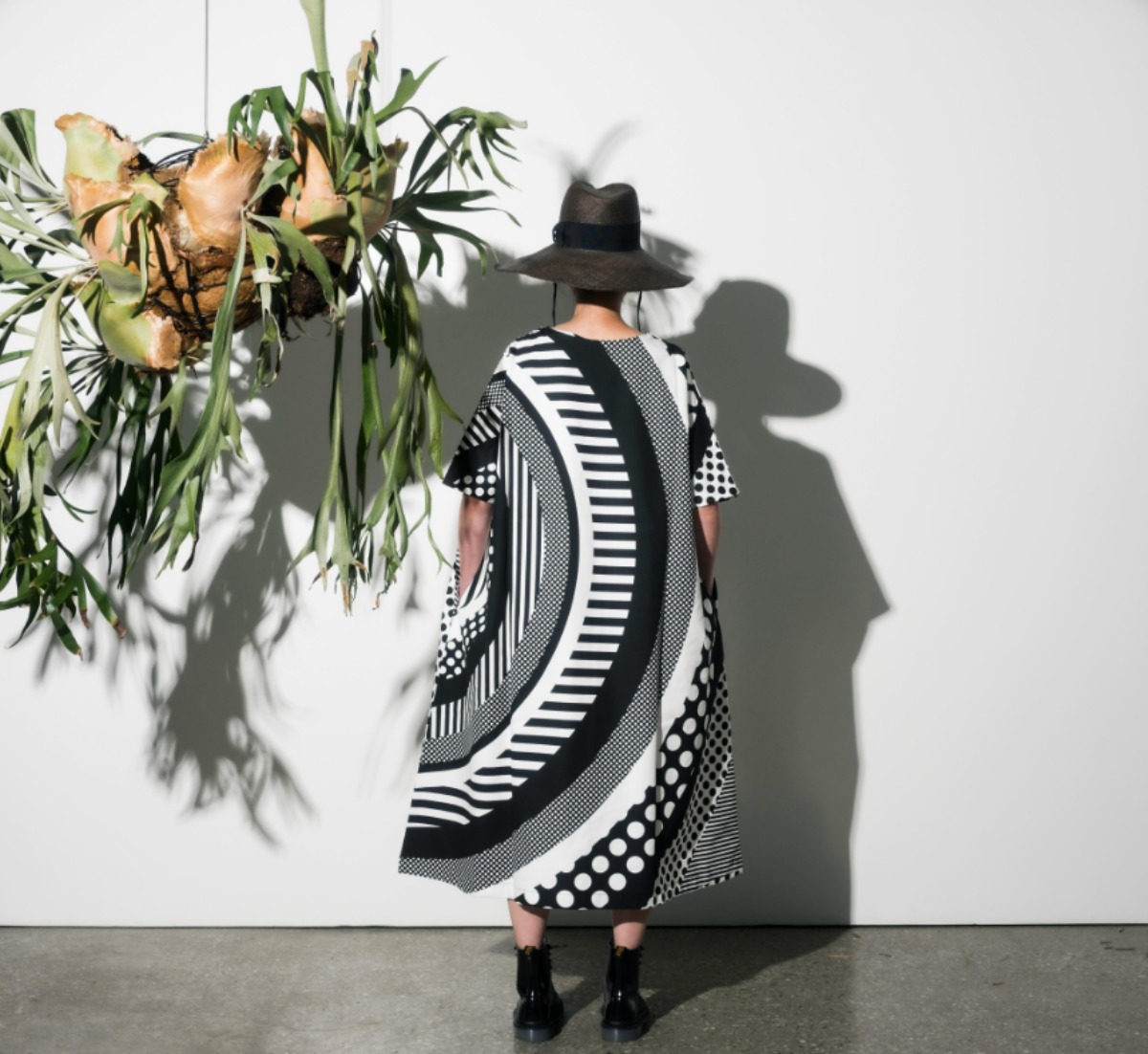 「HIROCOLEDGE」は、高橋理子さんによる、アートとファッションの融合を目指すプロジェクト。円と直線のみで構成される大胆なグラフィックが特徴的で、日本に古くから存在するシンプルで機能的な工芸品や道具、また、それを支えてきた合理的なもの作りの考えに基づいたコレクションを展開しています。