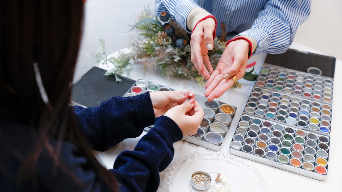テイクアウト可能なメニューも充実し、手作りの小物も販売。