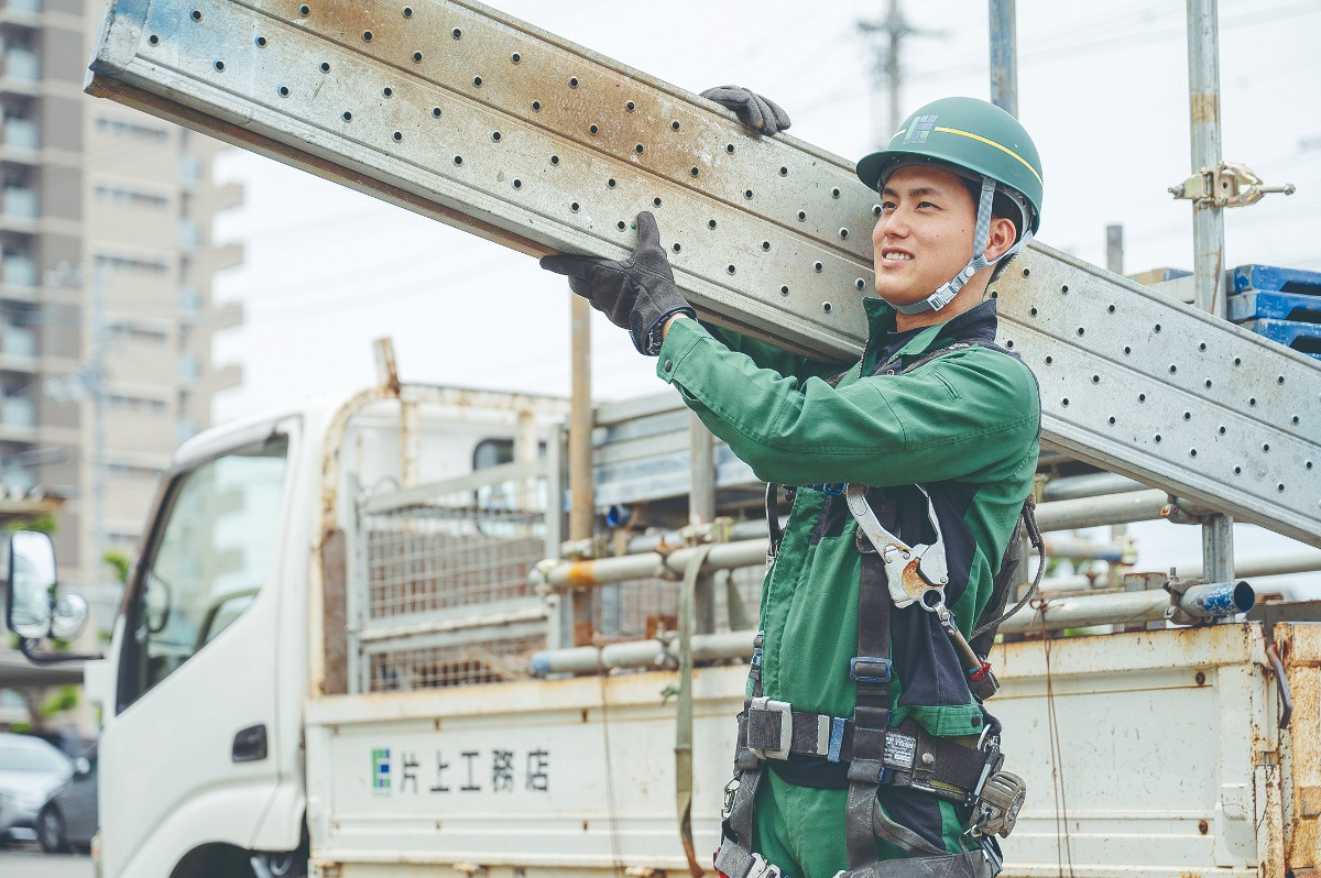 四国有数の工業地帯で、プラント工事における足場の架設から解体までを行う「片上工務店」。