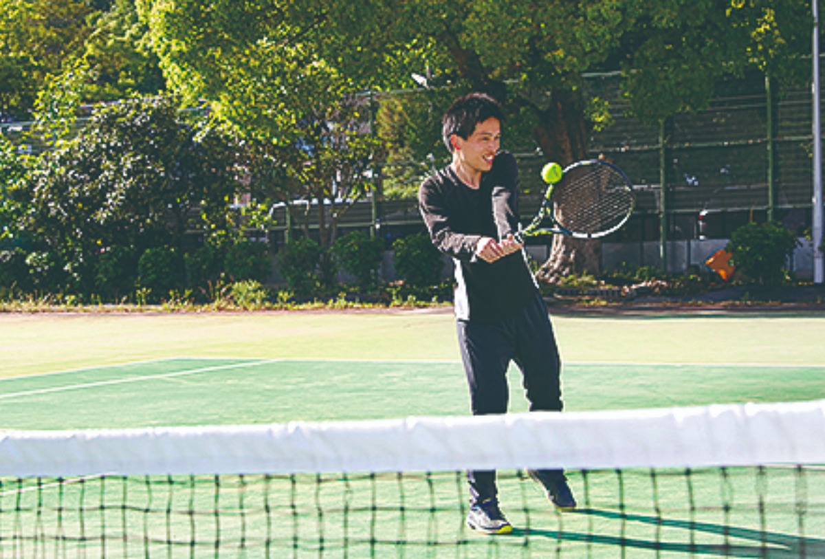 オフィスのすぐ裏にテニスコートがあるので、昼休みはテニスが好きな同僚と汗を流しています。