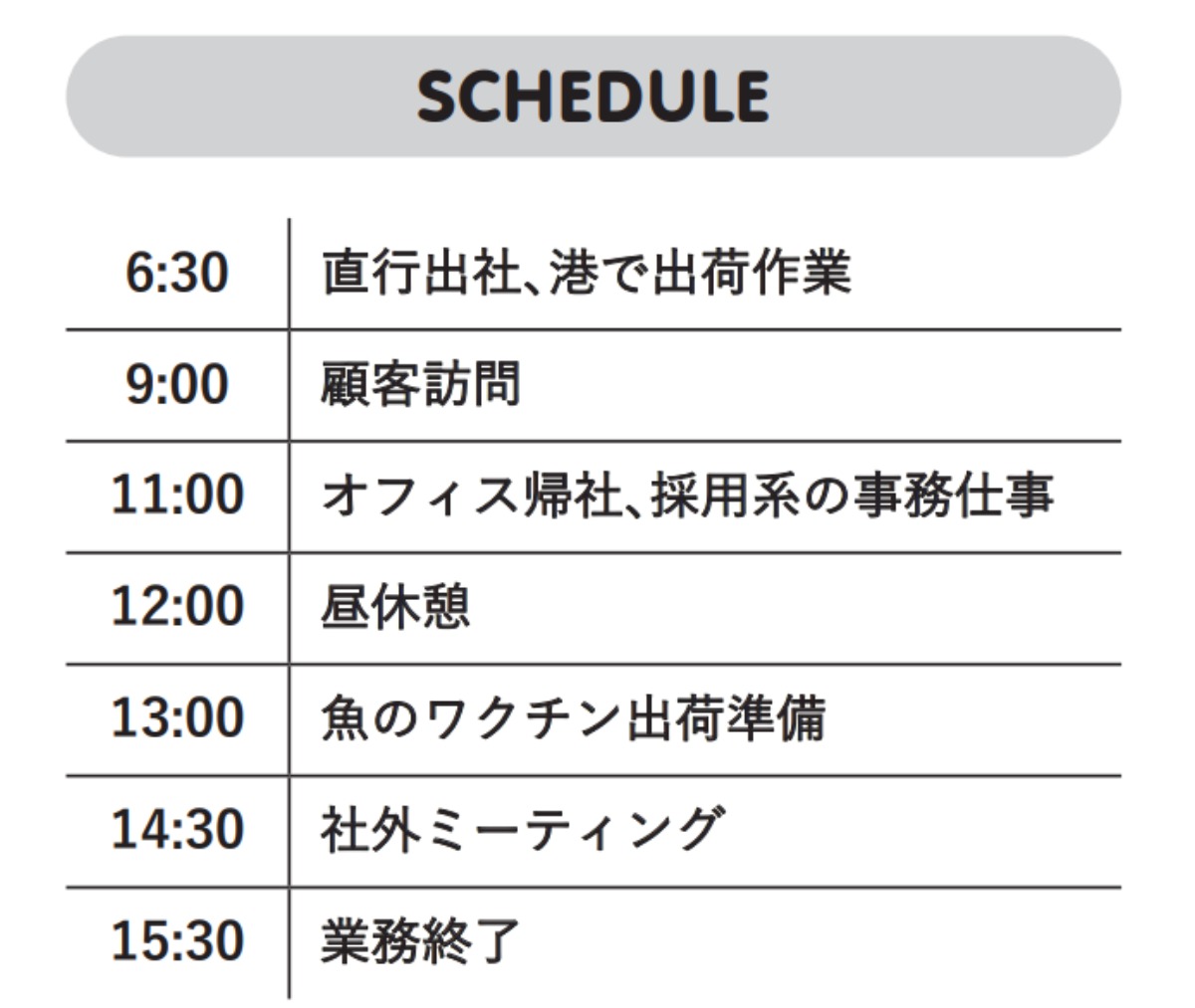 稚魚の販売や餌・ワクチンの提供、出荷・販売など、地域の養殖漁業を一括で支える「バイオ科学販売」。
