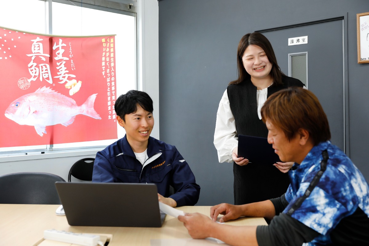 愛南町出身。大学卒業後はフリーランスを数年間経験するも生活環境の変化から安定した企業勤めを志望し、地元貢献や水産業への興味から入社に至った。