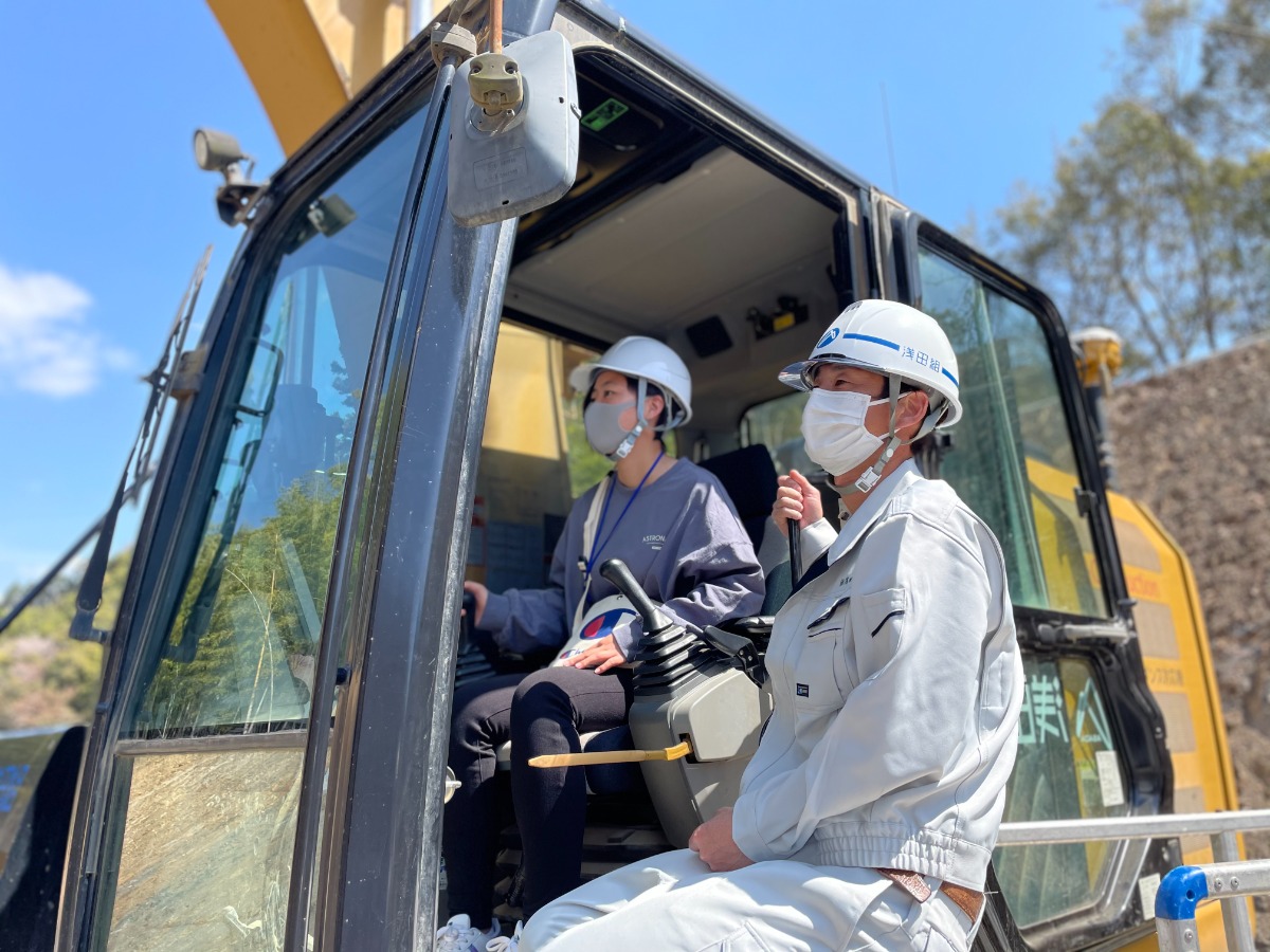 南予の学生に工事現場体験会の機会を設けて、建設業の魅力を伝えている