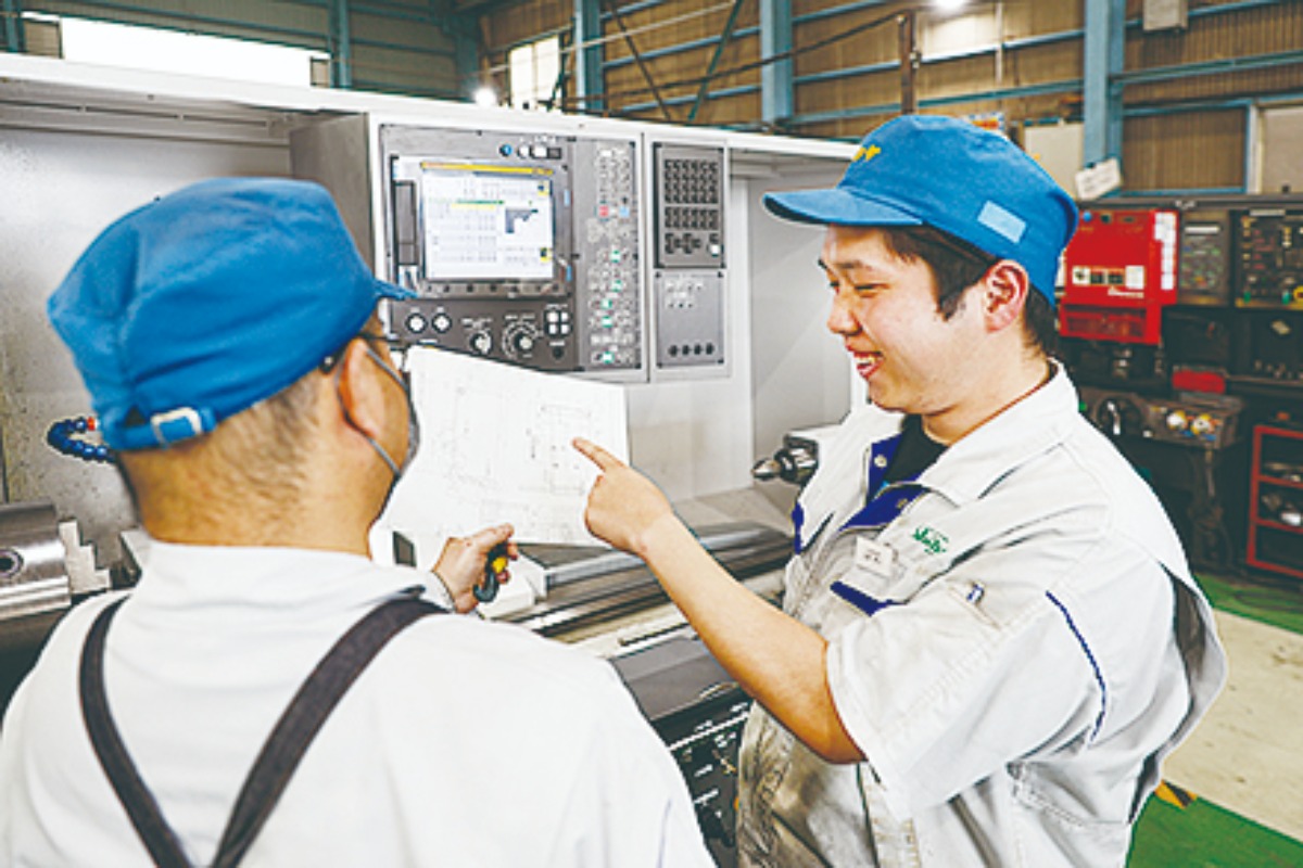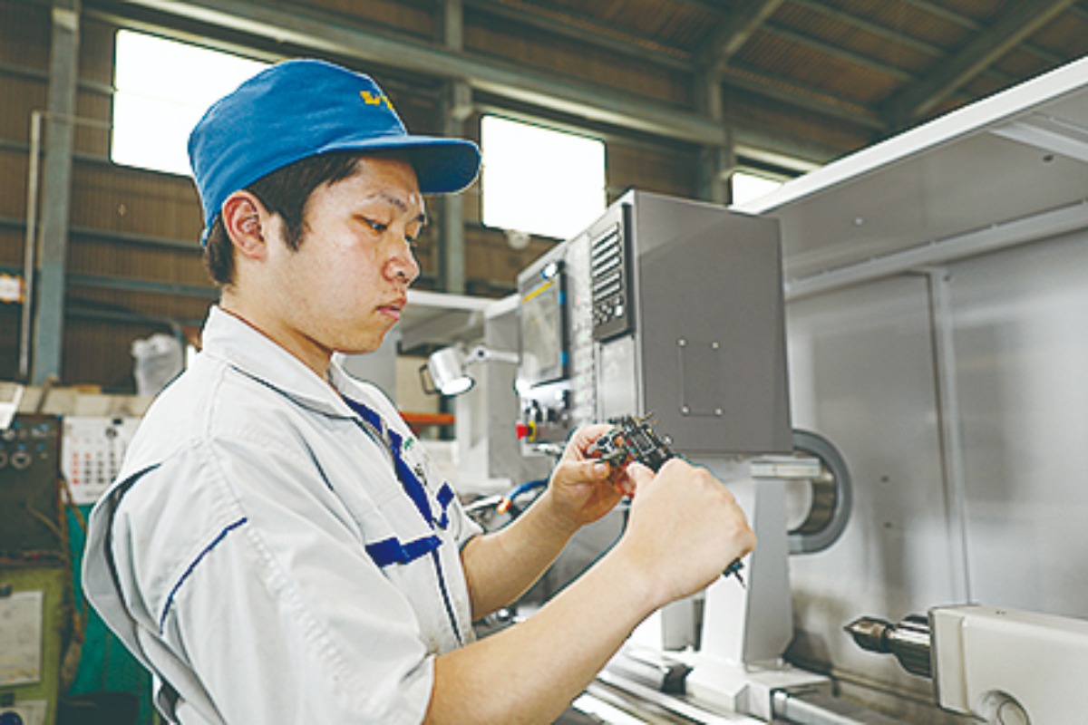 「部品製作のプログラミングから機械操作まで、様々な工程を一人で担当することも多いんです」と、やり甲斐を語る近藤さん。特に巻き込み事故は絶対に起こさないよう厳重に注意しています。『ちょっとならいいかな』の気持ちは重大事故の元。気になる所がある際は、必ず機械の稼働を止めて修正や対応をします」と安全意識の高さを見せる。
